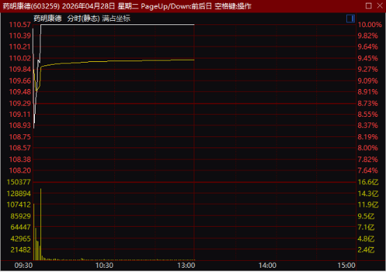 CRO龙头股药明康德(603259)A股今天上午盘中强势涨停,最新股价报110.57元/股,总市值为3299亿元。